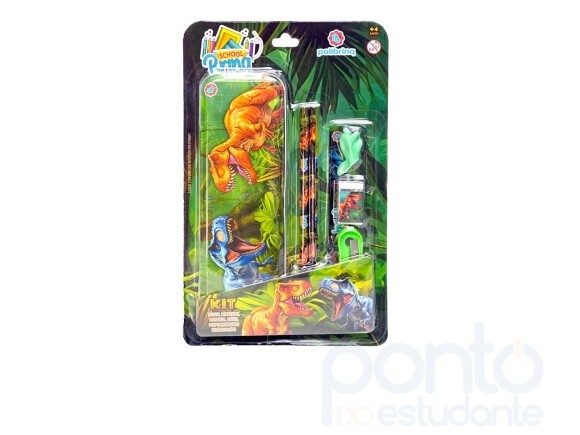 Kit Escolar Infantil , com estojo de lata , contendo um livro para desenhar , 2 lapis , 1 borracha , e tintas guache com pincel.