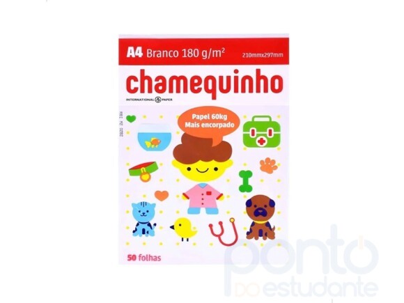 Papel Sulfite A4 Chamequinho 180g/m² 60kg Branco 50 Fl