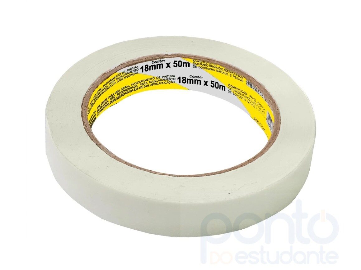 Fita Adesiva Crepe 18X50 Adelbras, ideal para trabalhos escolares, fechamentos de embalagens, mascaramentos, fixação, proteção, enfaixamentos, emendas, reforços, trabalho em superfícies irregulares, vidros, metal, borracha e partes plásticas de veículos.