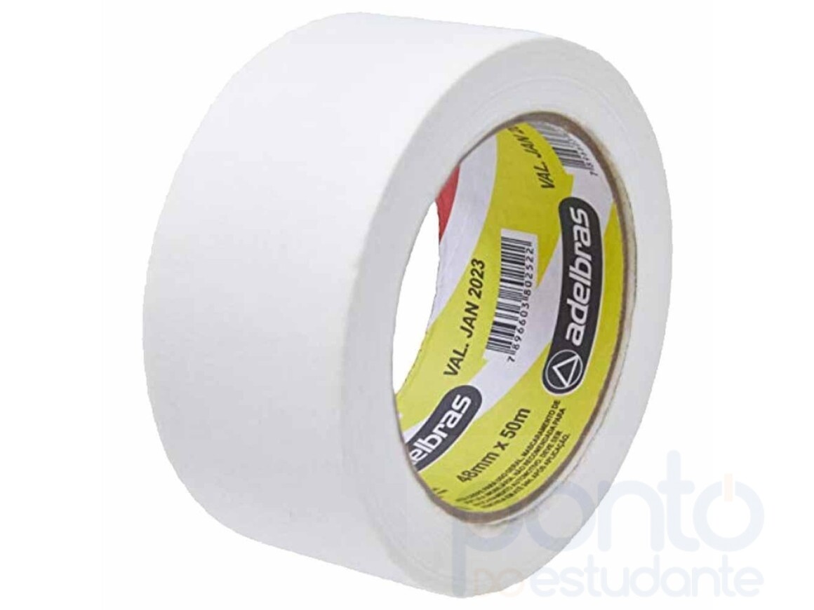 Fita Adesiva Crepe 48x50 Adelbras. Ideal para Trabalhos escolares Fechamentos de embalagens Mascaramentos Fixação Proteção Enfaixamentos Emendas Reforços Trabalho em superfícies irregulares. Vidros,metal,borracha e partes plásticas de veículos.