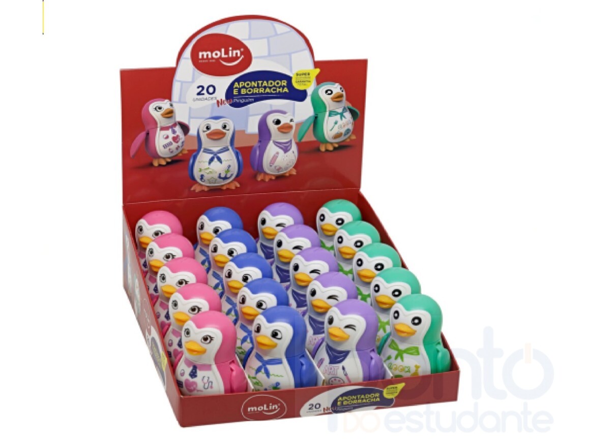 Apontador Com Depósito e Borracha New Pinguim MOLIN