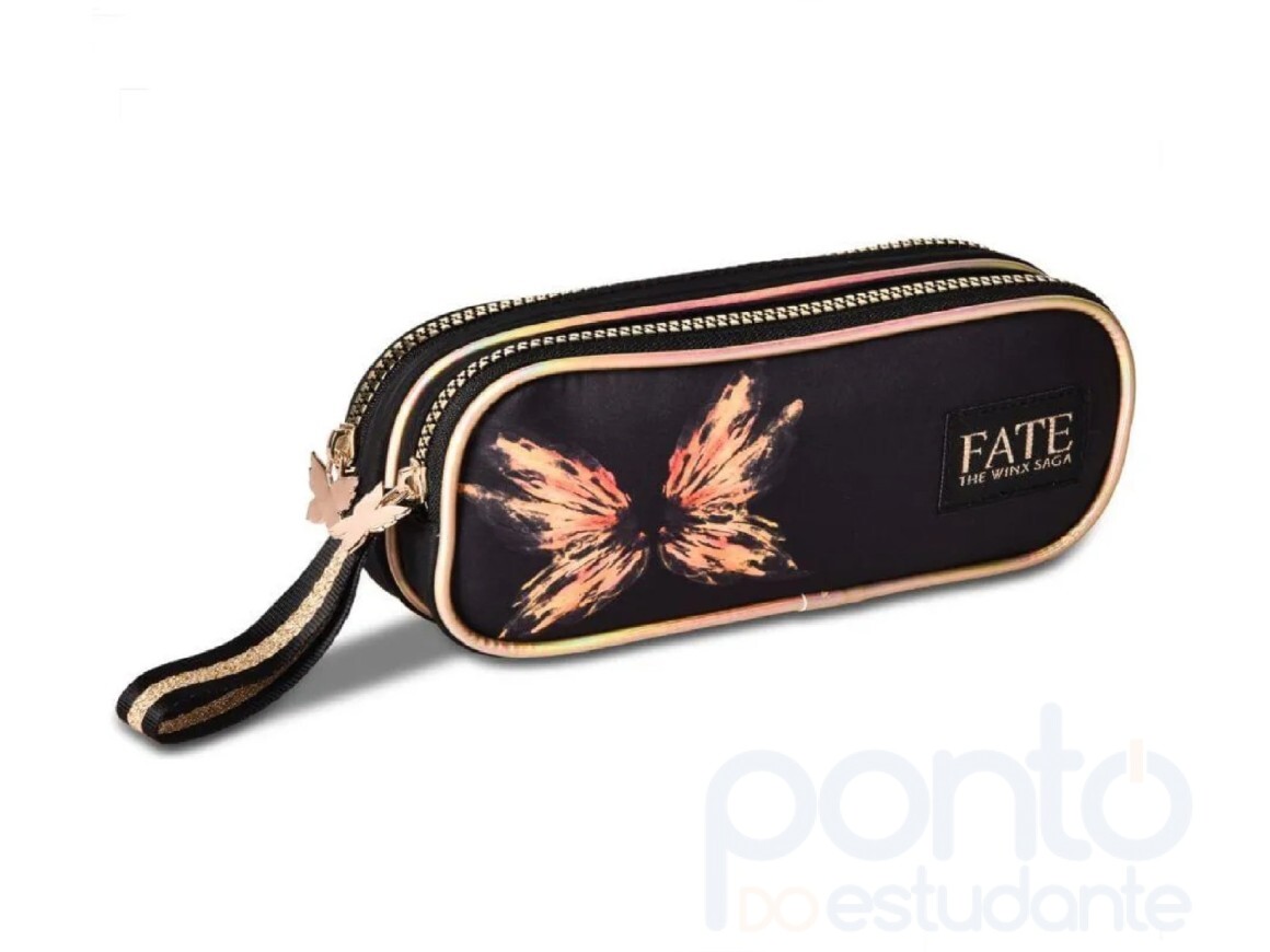 O estojo oficial da Fate é confeccionada em material soft com tag bordada, silk no painel frontal e puxadores metalizados.