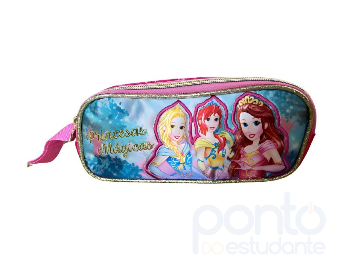estojo Clio Princesas Mágicas, estojo PR24520F, estojo infantil, estojo escolar, estojo temático, estojo resistente, estojo para crianças, estojo prático e divertido.