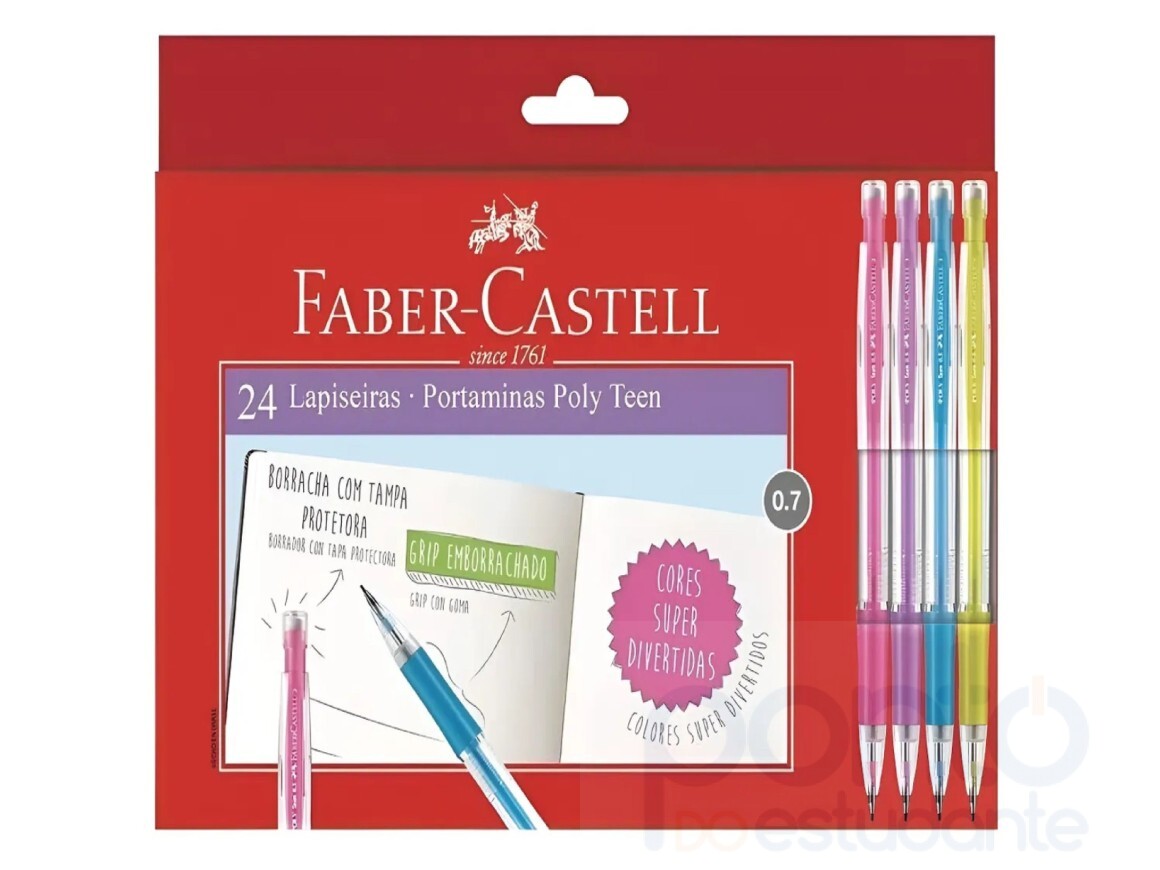 A Lapiseira Poly Teen da Faber-Castell tem Grip emborrachado: maior firmeza ao escrever, tem ponteira retrátil, evitando a quebra do grafite, borracha com capa protetora, ponta de 0.7mm garante um traço fino e bom desempenho na escrita.