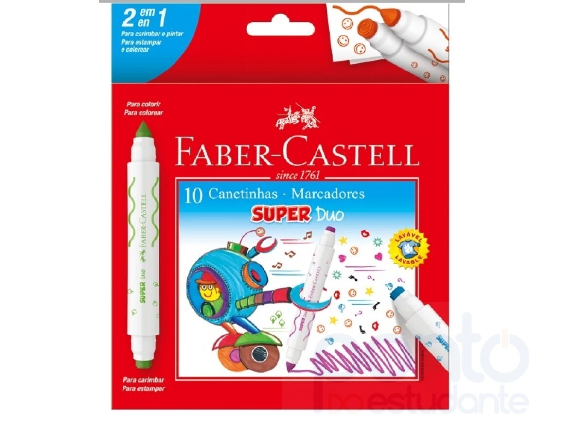 Caneta Hid. Faber Castell Super Duo 10 Cores + 10 Carimbos