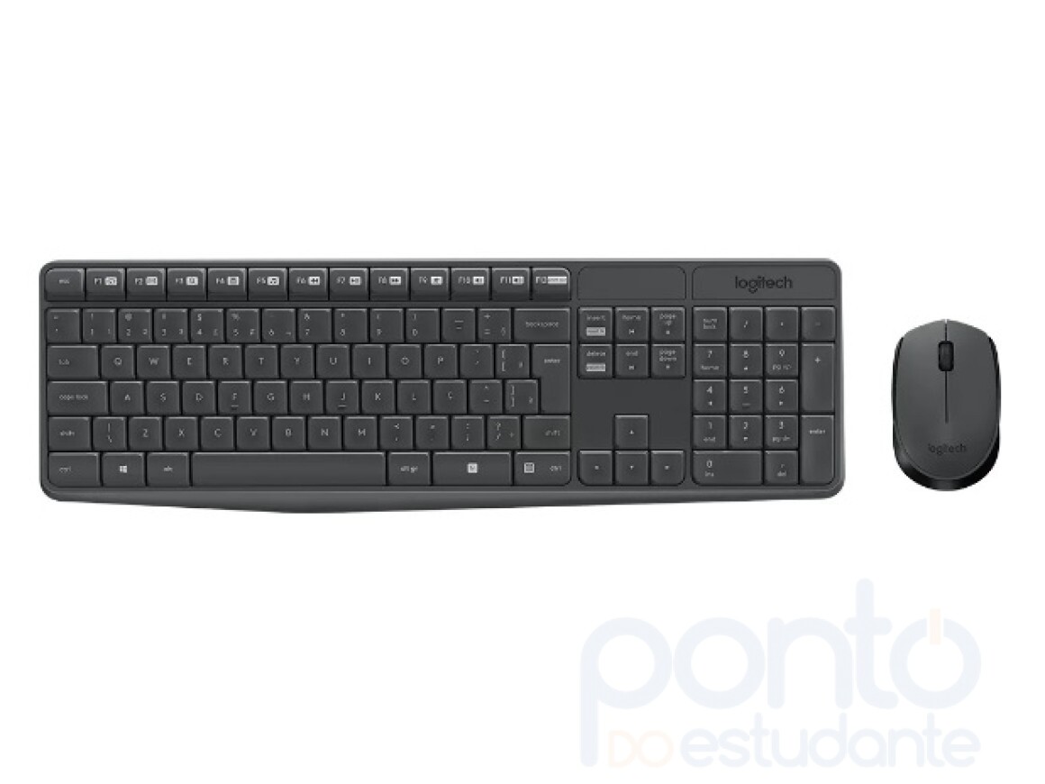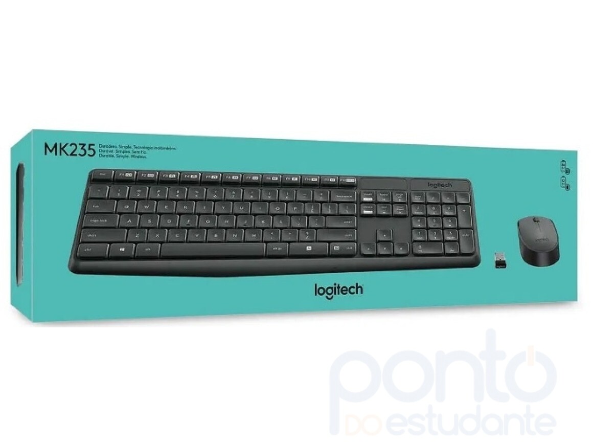 O MK235 é uma combinação de teclado e mouse plug-and-play de uso simples com conexão sem fio confiável e alcance de até 10 metros por meio de um minúsculo receptor USB compartilhado e teclado em layout ABNT2.