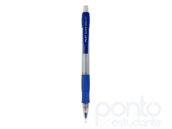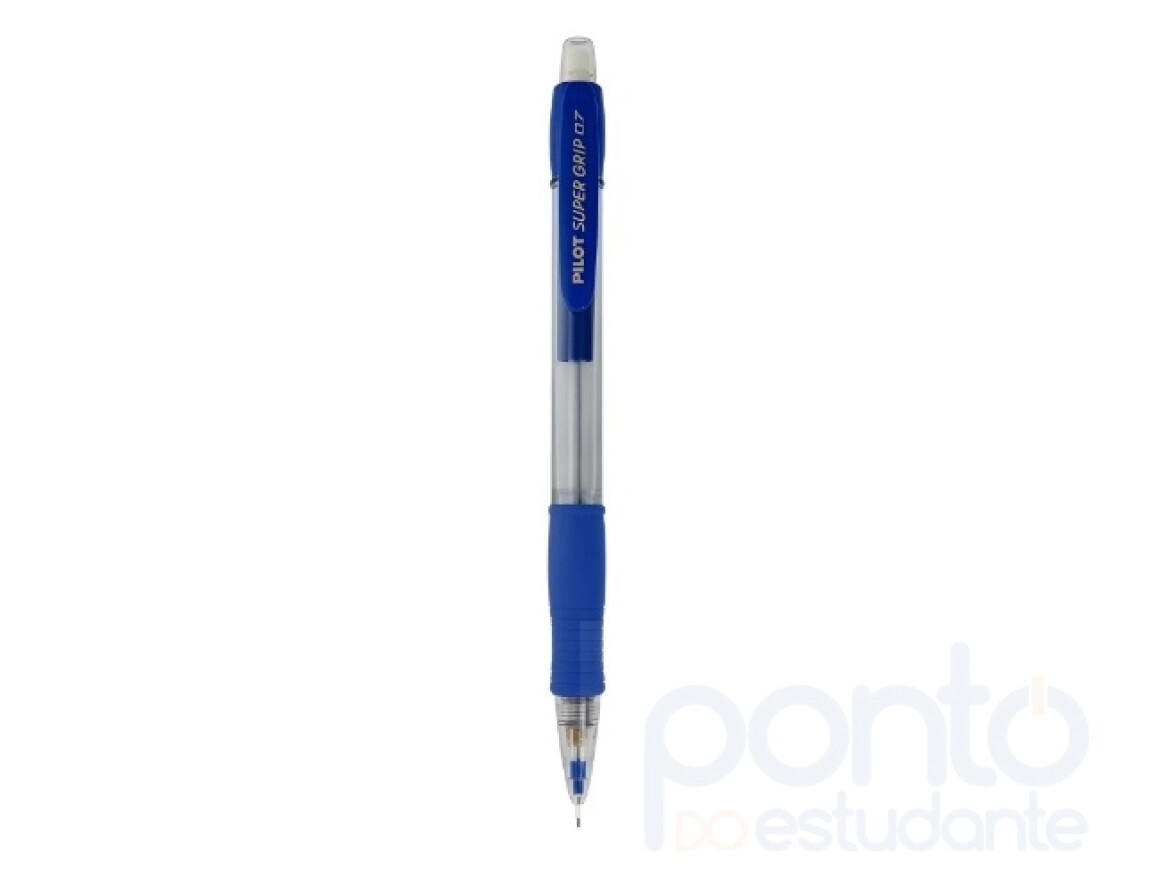 A Lapiseira Pilot Super Grip 0.7mm destaca-se por seu corpo translúcido arredondado e um grip em borracha macia, proporcionando uma experiência de escrita confortável e precisa.