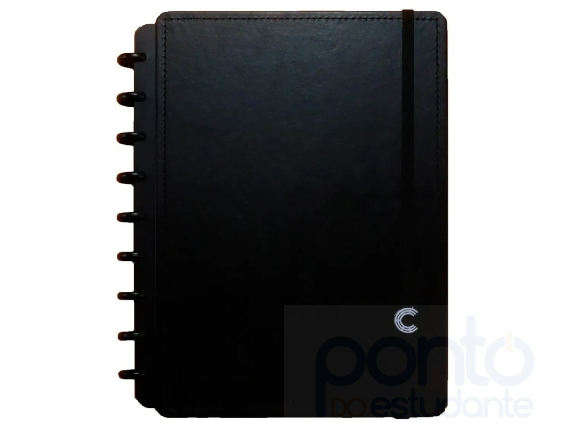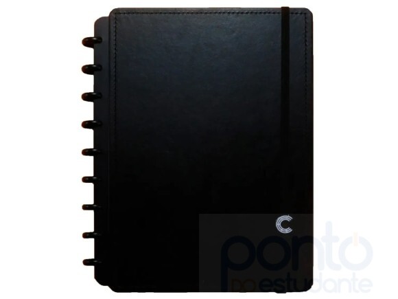 Caderno Inteligente Basic Black Médio, um caderno personalizável onde é possível trocar a capa, folhas e acessórios.