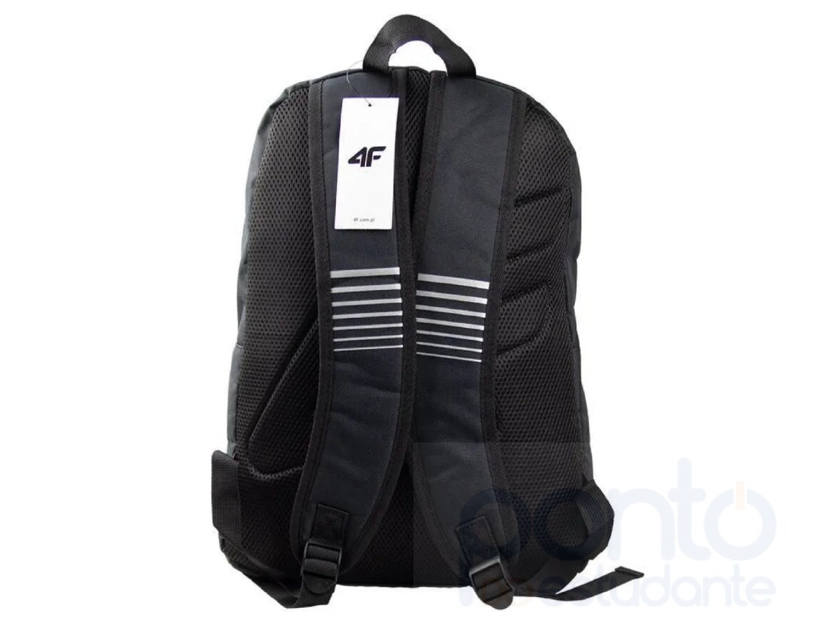 Mochila preta com etiqueta de identificação interna. Suporta até 6kg e comporta até 20L. Composta por: 600D/PVC 100% poliéster. Estampa refletiva e bolso frontal com gancho interno. Possui bolso telado interno. Puxadores em tecido com detalhes emborrachados e refletivos. Conta com alças de ombro ajustáveis tipo camiseta, elas possuem listras refletivas. Sistema comfort-back para maior conforto e proteção das costas. Possui detalhe em bordado nas costas.