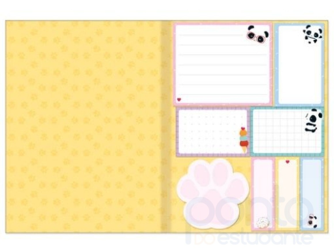 O Kit Tili Notes Panda vem com 8 blocos autoadesivos reposicionáveis em 5 tamanhos diferentes para uso em cadernos, planners, diários, livros e qualquer outro lugar que desejar.