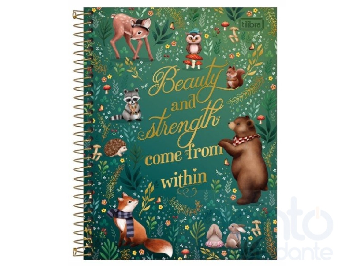 O Caderno Espiral Capa Dura Universitário 1 Matéria Loveland 80 Folhas possui capa dura com detalhe metalizado, parte interna decorada, bolsa de papel decorada para guardar trabalhos e anotações, folha com adesivos funcionais, folhas pautadas decoradas e espiral colorido.