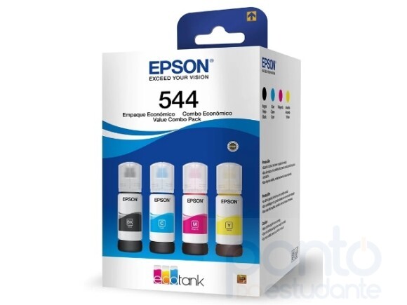 - Kit Garrafa Epson (T544520-4P) T544 para Ecotank Preto, Ciano, Magenta, Amarelo c/4 cores Original
