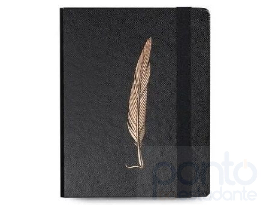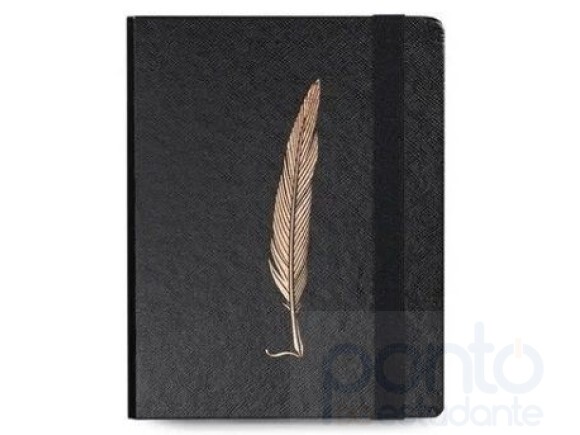 Capa Dura com cantos arredondados e fechamento com elástico.