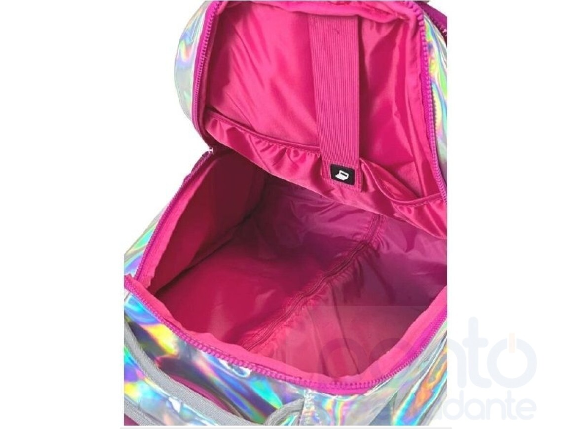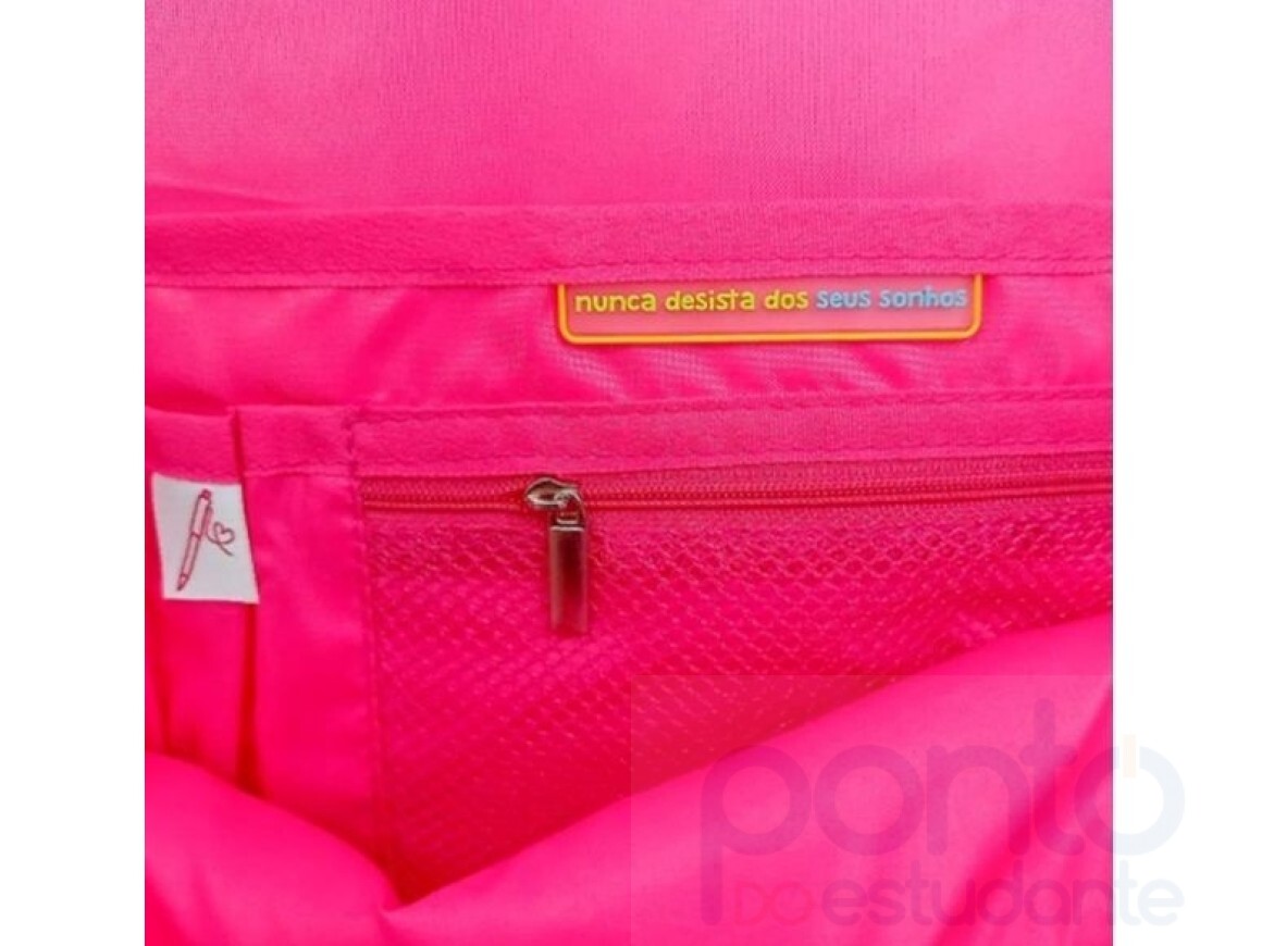 O forro da mochila e do estojo é todo rosa pink, dando um charme extra!
