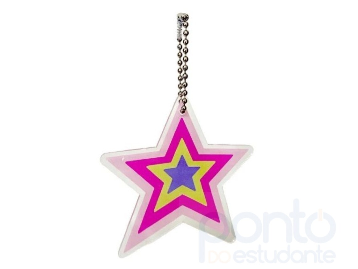 Vem com um chaveiro de acrílico com formato de estrela.