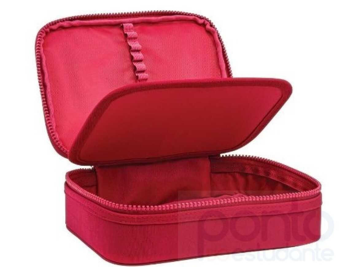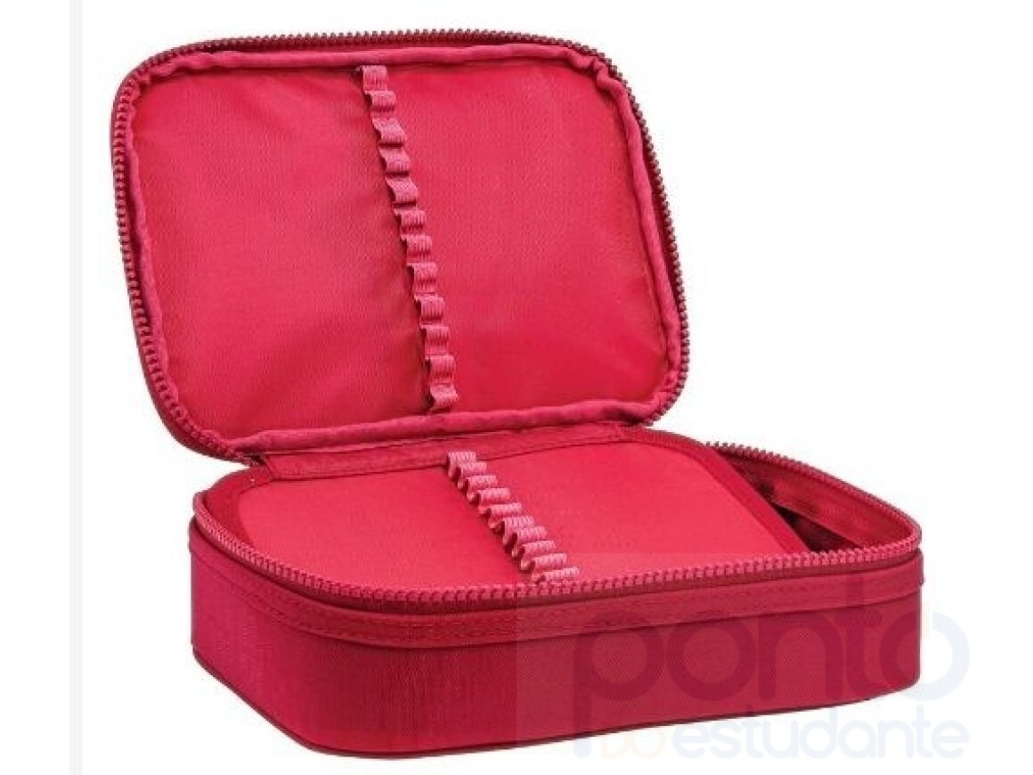 Ele conta com um compartimento de amplo espaço, fecho por zíper e, para melhor organização dos itens, possui divisória interna e 24 elásticos para acoplar seus lápis com estabilidade.