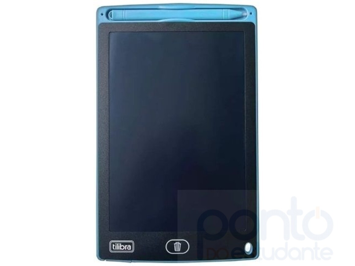 Com design portátil e leve, conta com uma tela LCD sensível à pressão e vem com uma caneta para criação de desenhos e para a prática da escrita de números e letras.