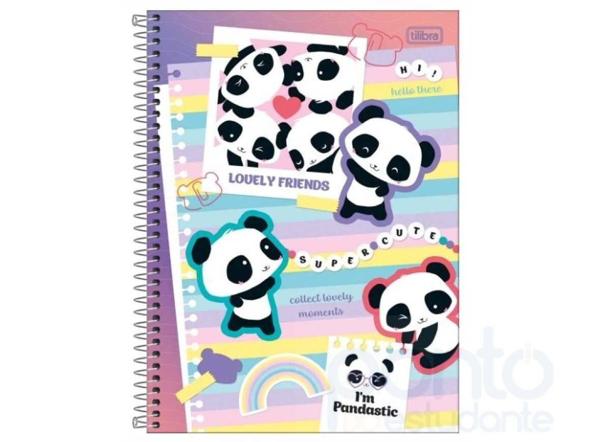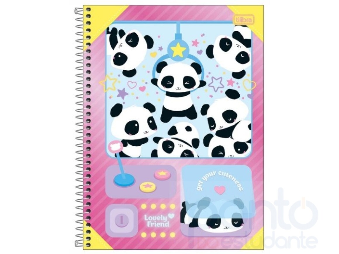 O Caderno Espiral Capa Dura Universitário 10 Matérias Lovely Friend 160 Folhas da Tilibra é perfeito para você que busca uma opção para organização da rotina de estudos com ilustrações de pandas alegres e surperfofinhos.
