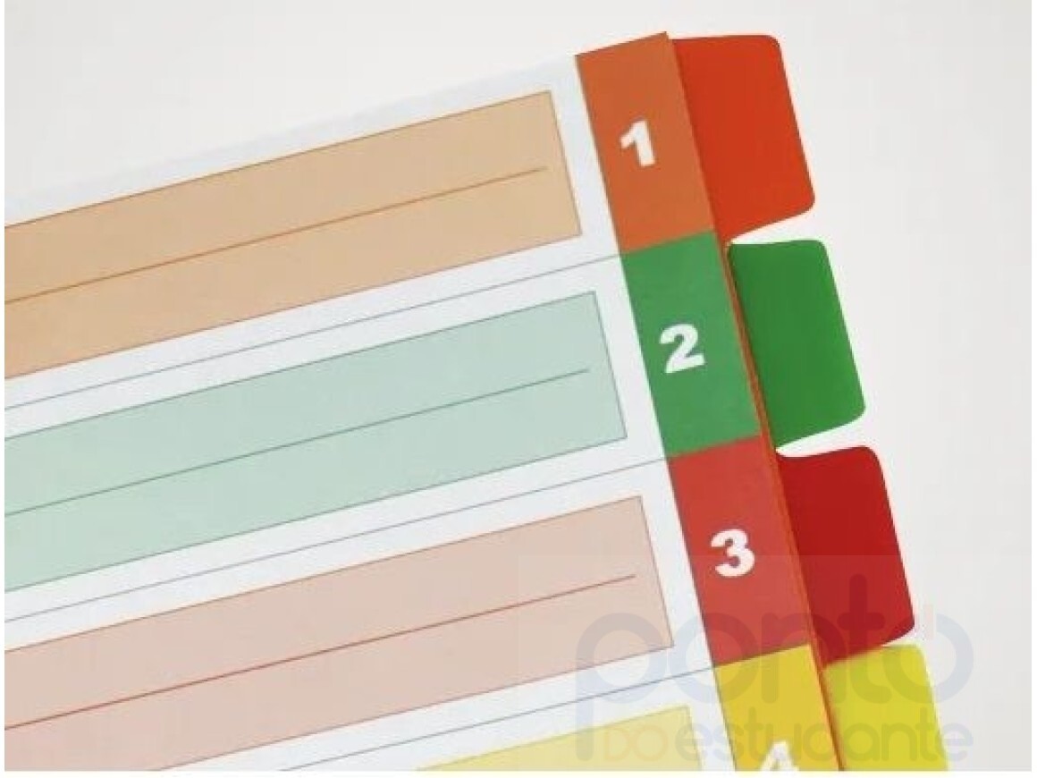 Com 10 Divisões coloridas para organização de documentos, matérias, etc.
