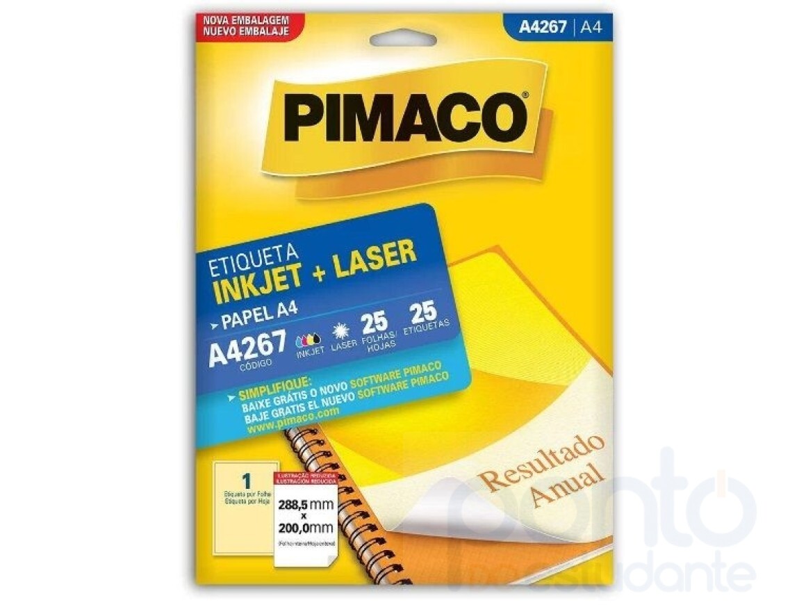 Etiqueta InkJet+Laser A4267 288,5mm x 200,0mm - Pimaco
