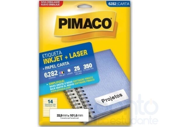 Etiqueta InkJet+Laser 33,9mm x101,6mm 6282 - Pimaco