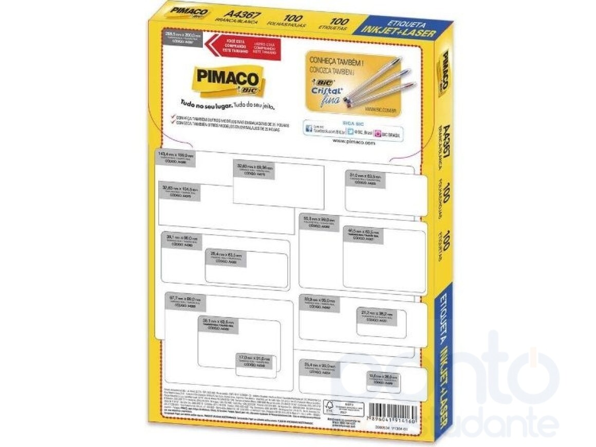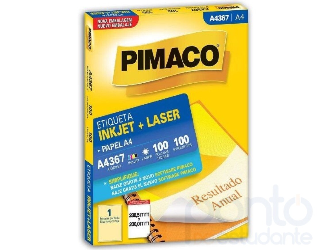 Etiqueta InkJet+Laser 288,5mm x 200,0mm A4367 - Pimaco