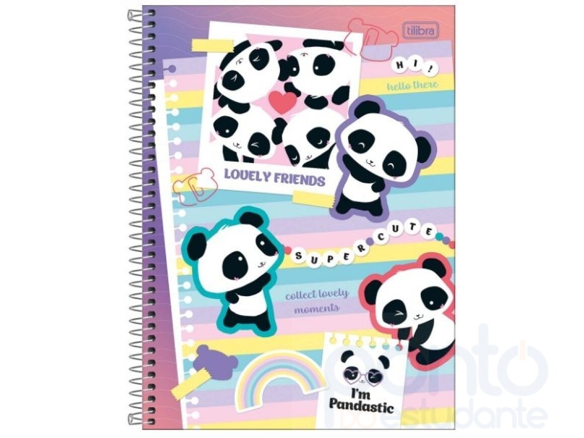 O Caderno Espiral Capa Dura Universitário 16 Matérias Lovely Friend 256 Folhas da Tilibra é perfeito para você que busca uma opção para organização da rotina de estudos com ilustrações de pandas alegres e surperfofinhos.