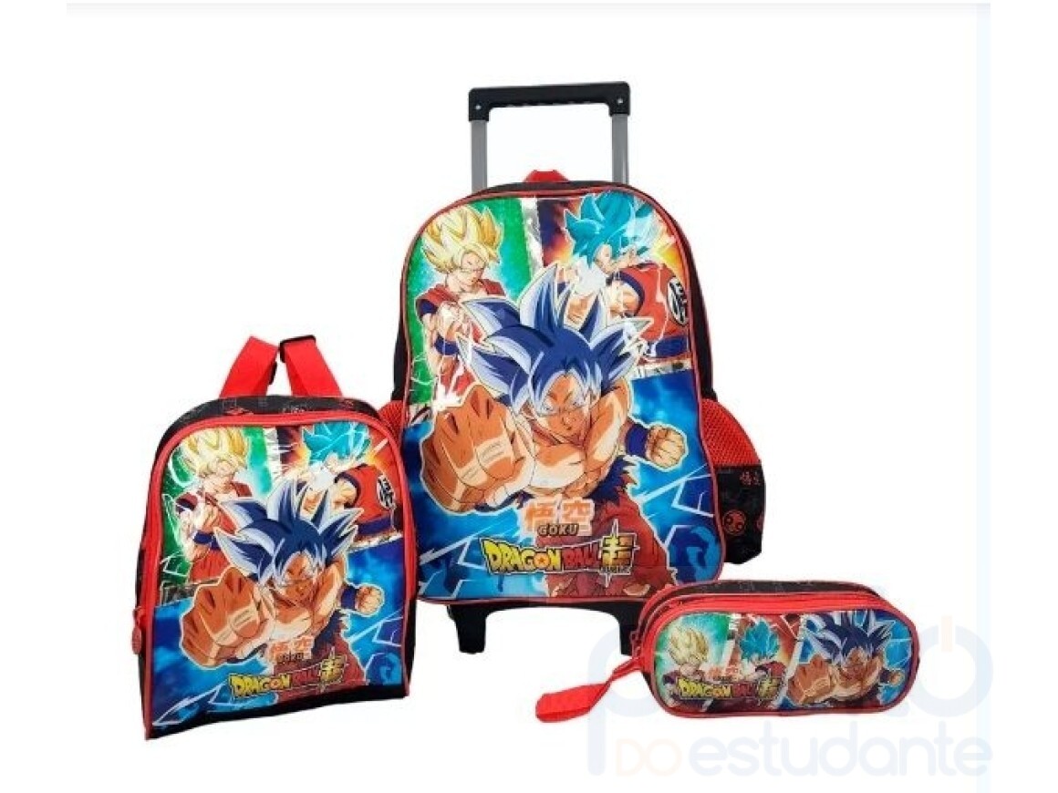 Chegou o Kit Mochila Dragon Ball Super de Carrinho Lancheira e Estojo da Clio Style, perfeito para a volta às aulas.