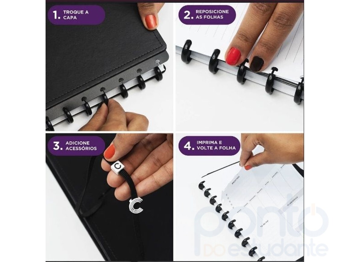 01 suporte com elástico para 01 caneta ou 01 lápis e discos M + elástico.