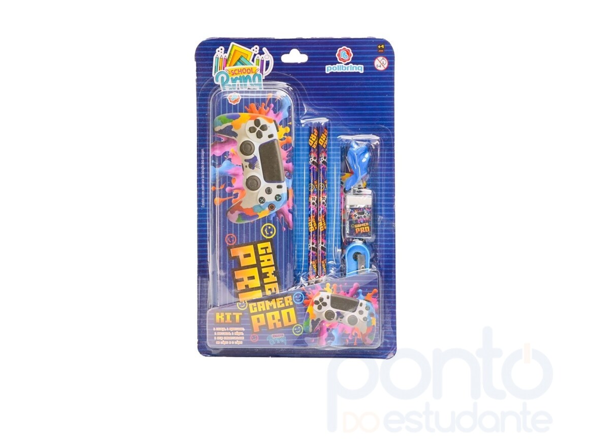 Kit Escolar Infantil , com estojo de lata , contendo um livro para desenhar , 2 lapis , 1 borracha , e tintas guache com pincel.