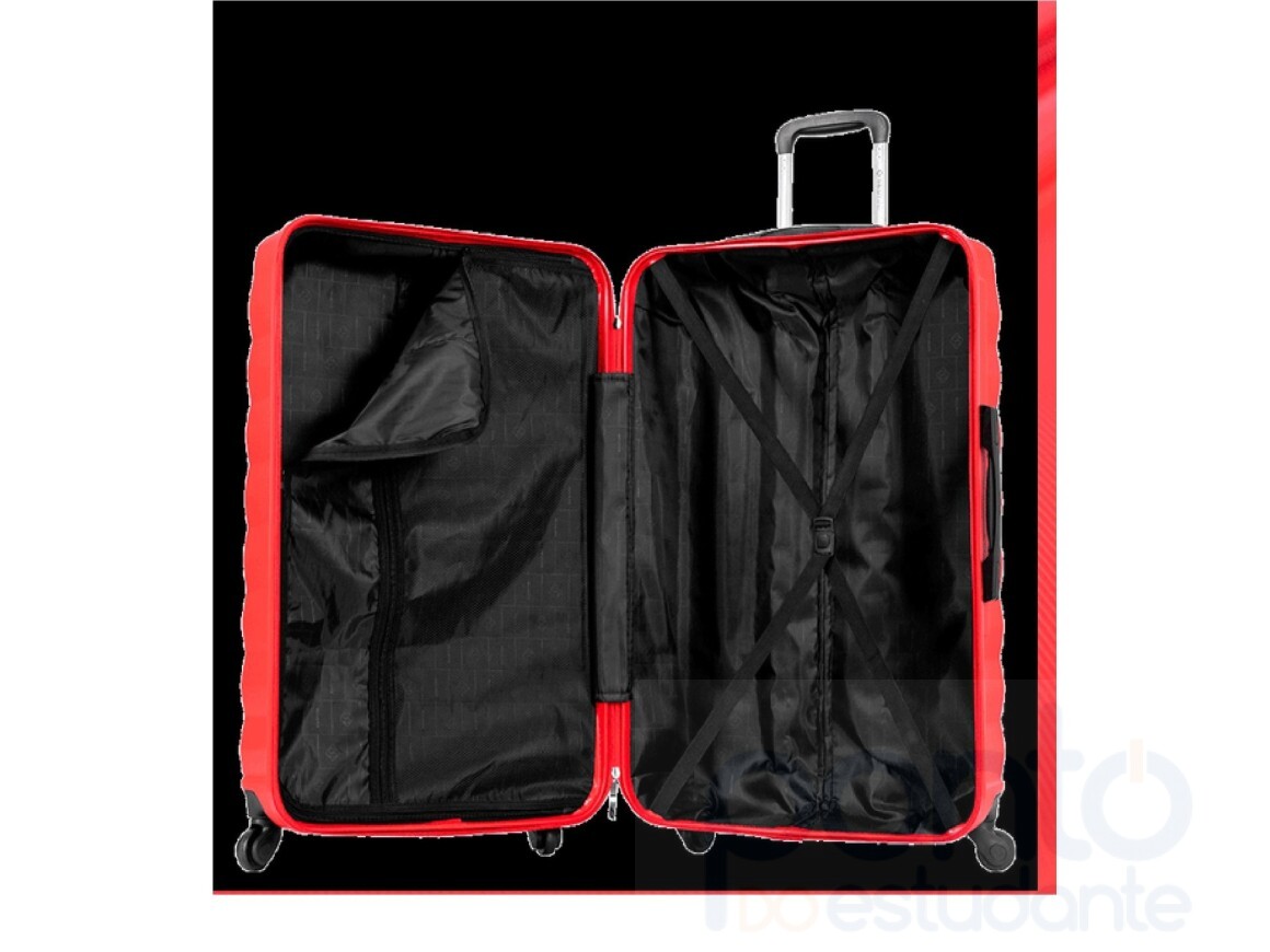 A Mala de Viagem Grande com Rodas 360° Neo - Vermelho é um item essencial para quem busca praticidade e estilo durante suas viagens. Pertencente à elegante Coleção NEO, esta mala é confeccionada com material ABS, garantindo durabilidade e resistência. Com um design rígido, esta mala oferece quatro rodas com um sistema de giro completo de 360°, proporcionando uma mobilidade suave e sem esforço em qualquer direção. Além disso, possui um cadeado fixo com segredo, garantindo a segurança dos seus pertences durante todo o percurso. Sua abertura central facilita o acesso aos itens armazenados, enquanto o carrinho embutido torna o transporte ainda mais conveniente. Internamente, a mala conta com elástico para segurar as roupas no lugar, além de uma divisória com zíper para melhor organização dos objetos. Com um amplo espaço interno, esta mala oferece praticidade para arrumar tudo o que você precisa para a viagem. Seu logo em metal adiciona um toque de sofisticação ao design, enquanto o fechamento com zíper garante a segurança dos seus pertences em todos os momentos.