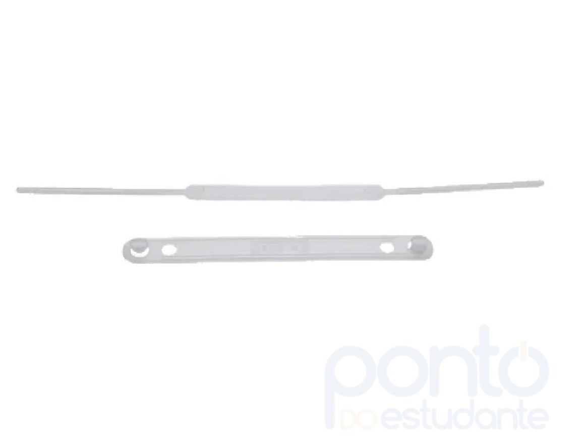 Grampo para pastas e folhas do tipo trilho de plástico injetado em polietileno.