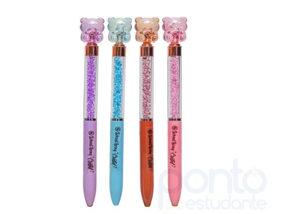A Caneta Strass Urso e pura paixao! Com um lindo design de urso e detalhes detalhados em strass, ela transforma cada anotacao em uma declaracao de amor. Perfeita para quem quer adicionar um toque de charme e romance ao seu dia a dia, essa caneta e ideal para espalhar fofura e alegria em cada palavra escrita!