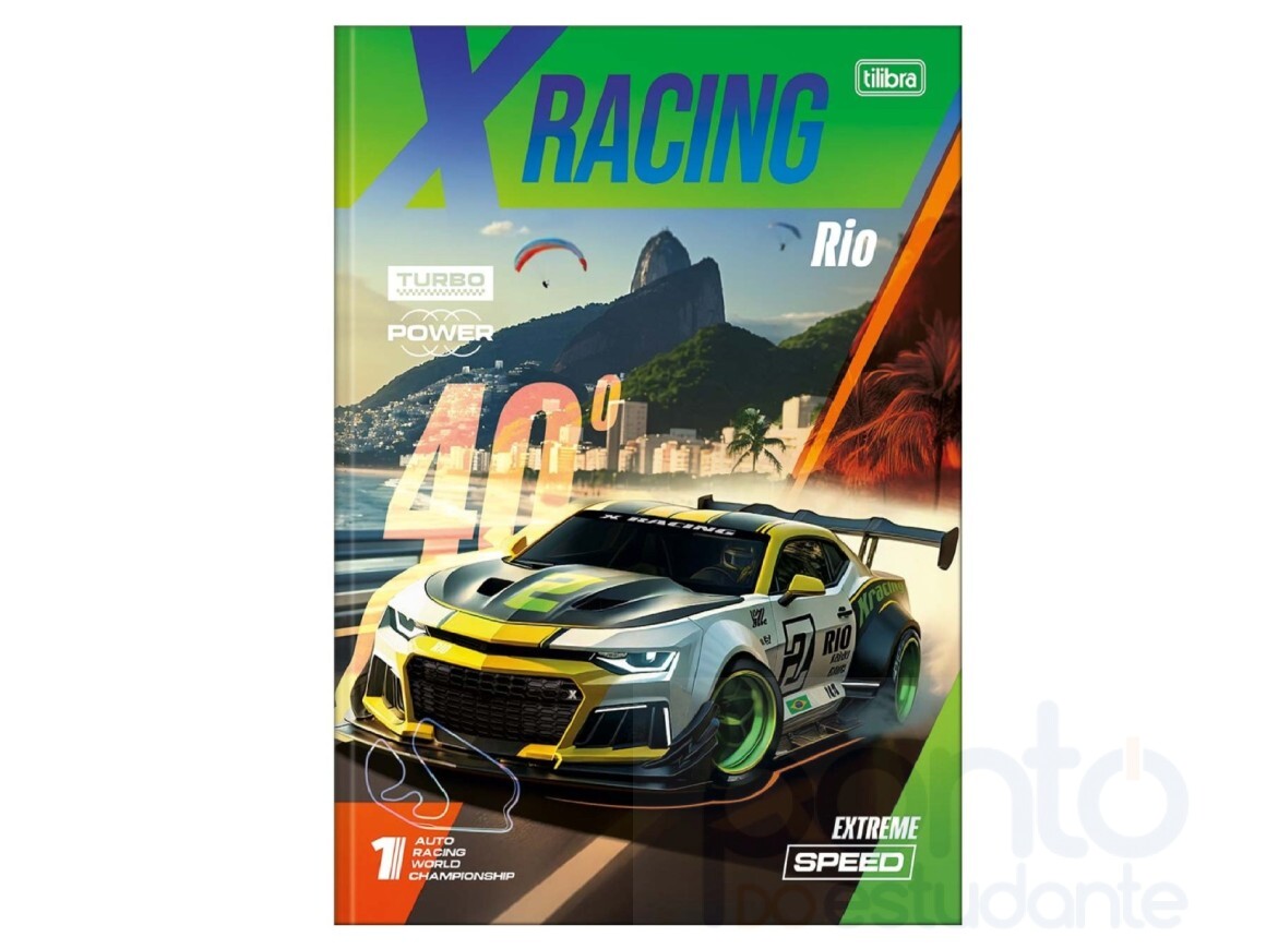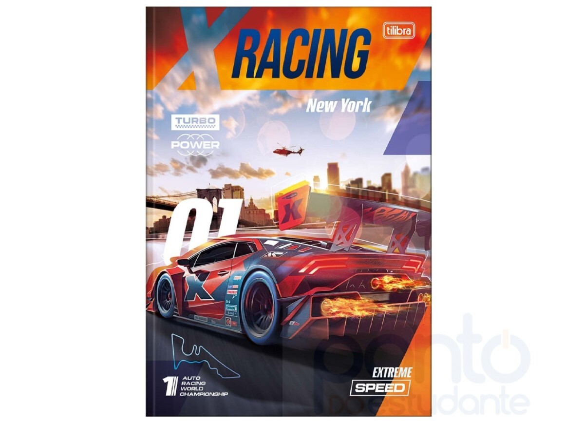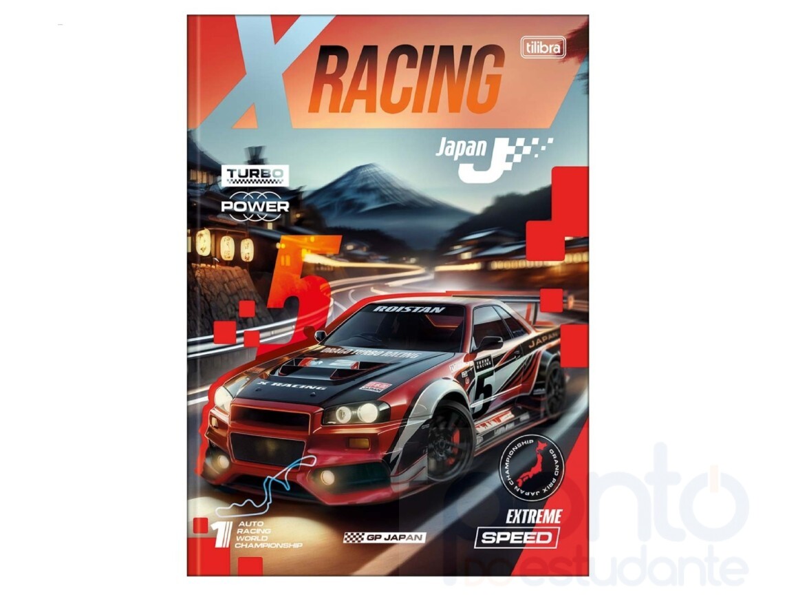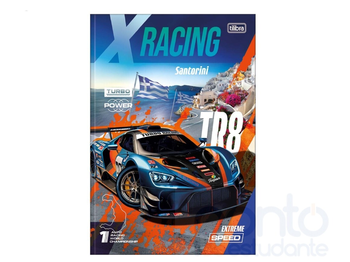 O Caderno Brochura Capa Dura Universitário X-Racing 48 Folhas da Tilibra é perfeito para você que busca uma opção para organização da rotina de estudos com ilustrações de cenários impressionantes e carros estilizados.