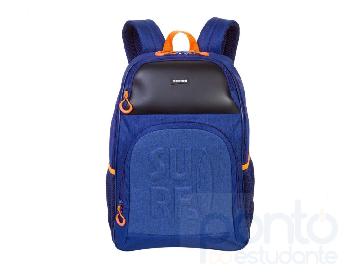 O design da linha Surf incorpora elementos que tem tudo a ver com o shape das pranchas e a vida de quem está sempre nadando atrás das melhores ondas: material emborrachado, painel 3D com textura jeans, estampa camuflada de tubarão e puxadores personalizados com cadarço. O resultado é essa mochila radical, mas cheia de funcionalidades: são dois bolsos frontais e o amplo compartimento principal, além de bolsinhos laterais em redinha. Para levar nas costas com conforto, a alça é espumada e tem ajuste de altura do ombro.
